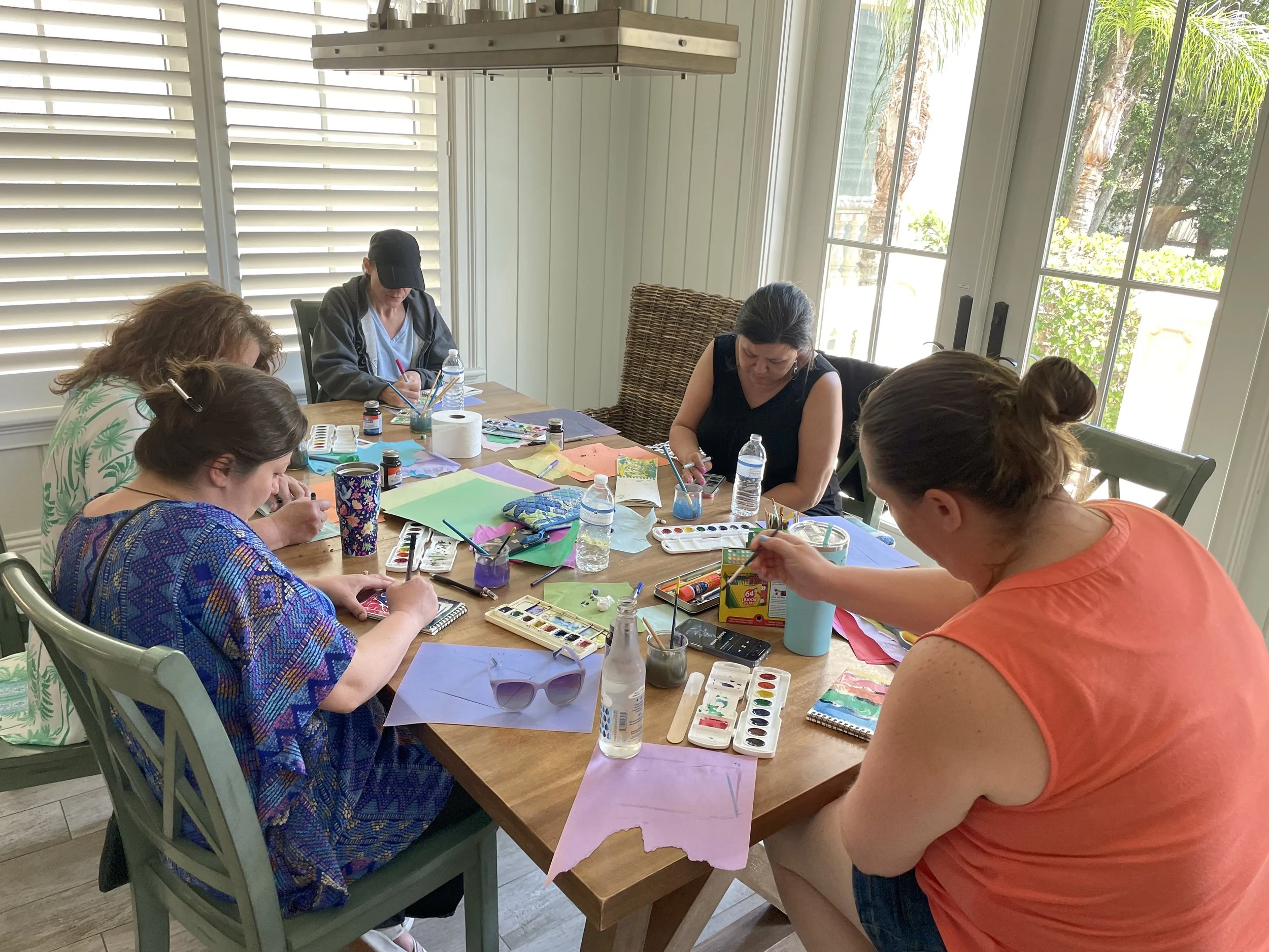 Soon, you gather with the group in our spacious living area and open your new art journal, surrounded by high quality art supplies, spa water, and snacks — and you dive into Brené Brown’s Gifts of Imperfection curriculum guided by 2 highly experienced and down-to-earth retreat leaders.